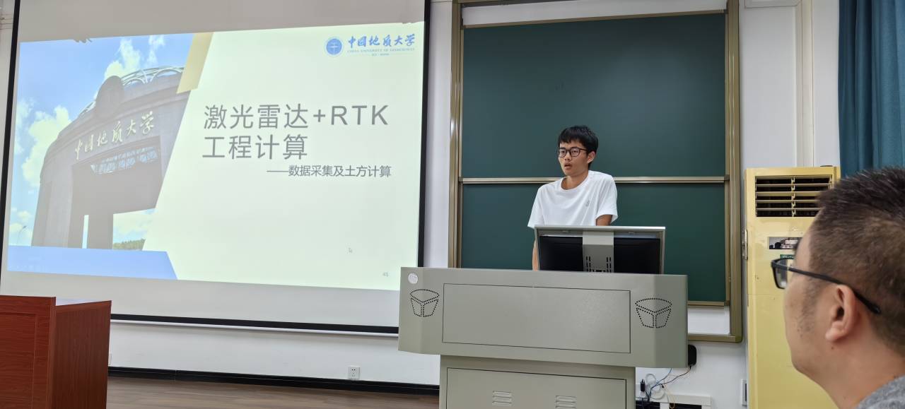 总结汇报期间,各实习员工代表围绕GNSS静态测量、跨河水准与三角高程测量比较、GNSS高程异常拟合、RTK测量与放样、巴东基地野外实习等内容展示实习小组工作成果,同时,对测绘工程专业的课程建设、实习内容提出建议。