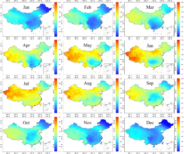 图5.太阳紫外辐射量月均值空间分布图