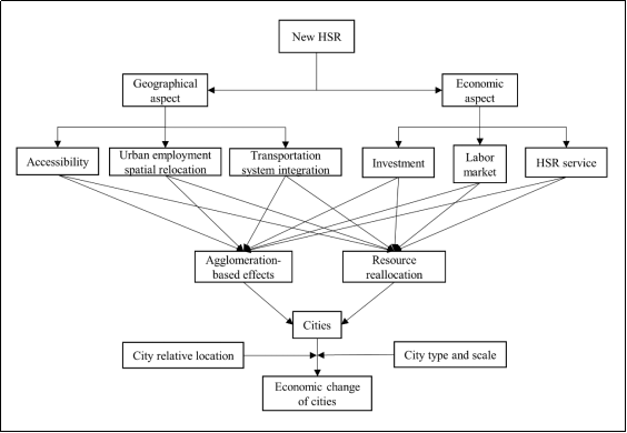 Fig.6. Mechanism analysis diagram of HSR's main impacts on cities.