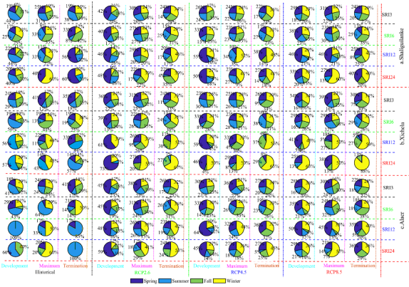 图5 不同干旱起始、最大干旱和干旱终止发生季节的占比